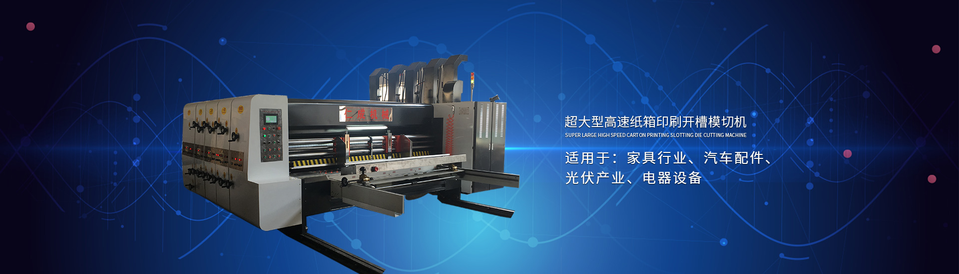 主要產(chǎn)品有高速印刷開槽模切機(jī)、半自動水墨印刷開槽模切機(jī)、全自動粘箱打包聯(lián)動線、全自動 插格機(jī)、半自動粘箱機(jī)、半自動釘箱機(jī)、手動釘箱機(jī)、薄刀分紙機(jī)、PE繩打包機(jī)、PP帶智能打包 機(jī)、圓壓圓模切機(jī)、平壓壓痕機(jī)、自動裱紙機(jī)、水墨污水處理機(jī)等產(chǎn)品